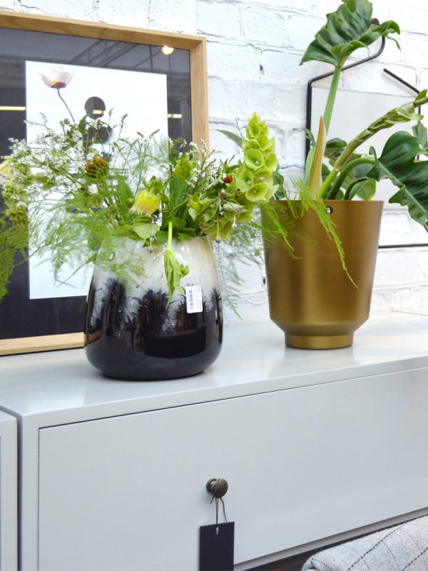 Pflanzen im Makrameesack, Pflanzen auf Rollkarten, Pflanzen in Messingvasen. Alle Trends werden von diesem Megatrend „Pflanzen“ bevölkert. Die grünen Genossen sind schon eine Weile nicht mehr aus der Interiorwelt wegzudenken. Auf den Fachmessen der letzten Jahre wurde es immer grüner, aber auf der diesjährigen Tendence kam ich mir mancherorts vor wie im Gewächshaus. Die Pflanzen sind nicht nur stille Begleiter, sondern werden richtig in Szene gesetzt, runden das Ambiente ab und stehen auch gerne im Mittelpunkt. Das tun sie auf der Tendence am liebsten hängenderweise. Hierbei vereint sich der Pflanztrend mit dem Makrameetrend: geknüpfte Blumenampeln schaffen eine vertikale Bepflanzung. Ansonsten tummeln sich die grünen Genossen gerne in Pflanzkästen für den Balkon oder die Küche, in Körben oder in Mini-Gewächshäusern und Glaskästen.